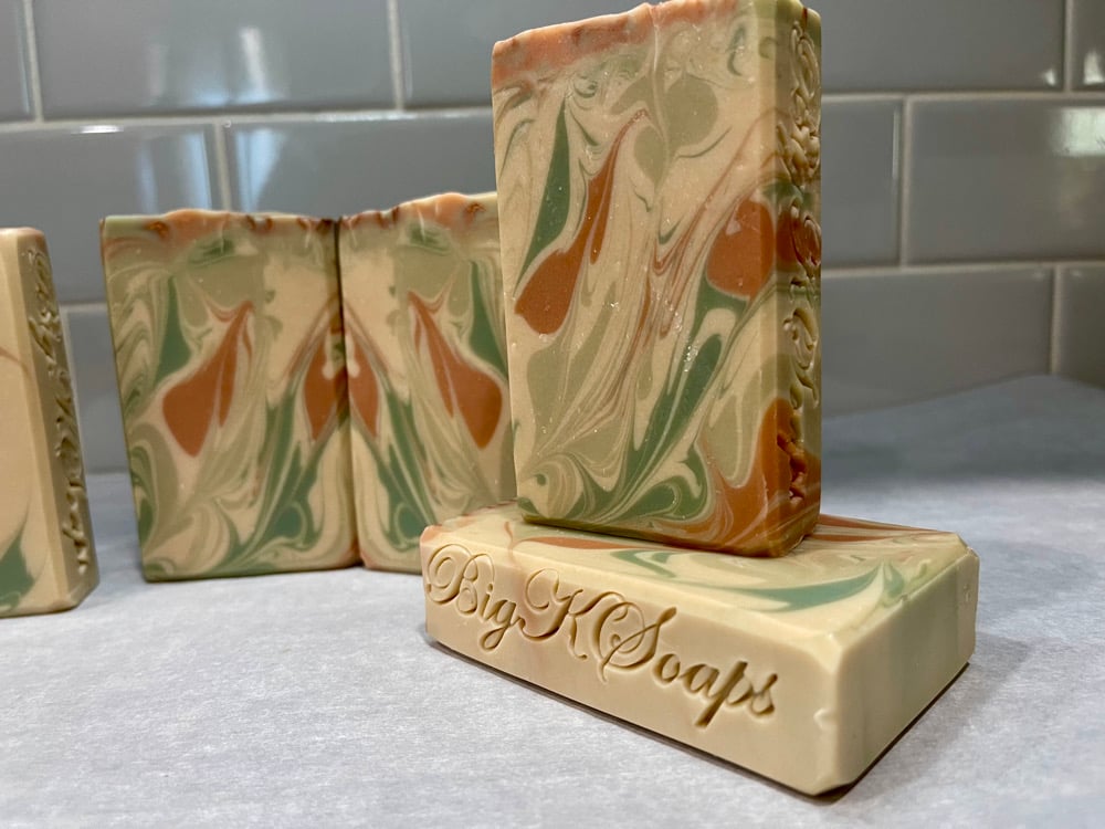 Since my products are all handmade, hand-poured, and hand-cut no two bars of soaps will look exactly the same. As colors, patterns, and shape can and do vary from batch to batch, please expect differences in my designs from time to time.