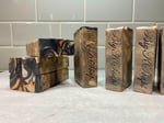Since my products are all handmade, hand-poured, and hand-cut no two bars of soaps will look exactly the same. As colors, patterns, and shape can and do vary from batch to batch, please expect differences in my designs from time to time.