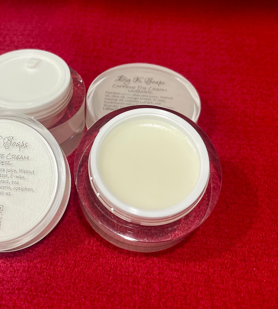 It is made with fantastic oils of: walnut oil, olive oil and rosehip oil. Also, caffeine extract, vegetable glycerin, sea buckthorne extract, , and lavender essential oil. Distilled water and aloe vera juice. mango butter and E-wax.
