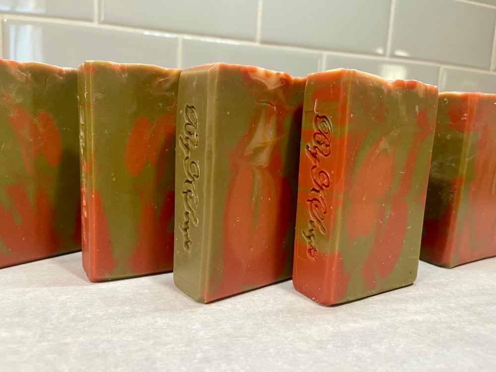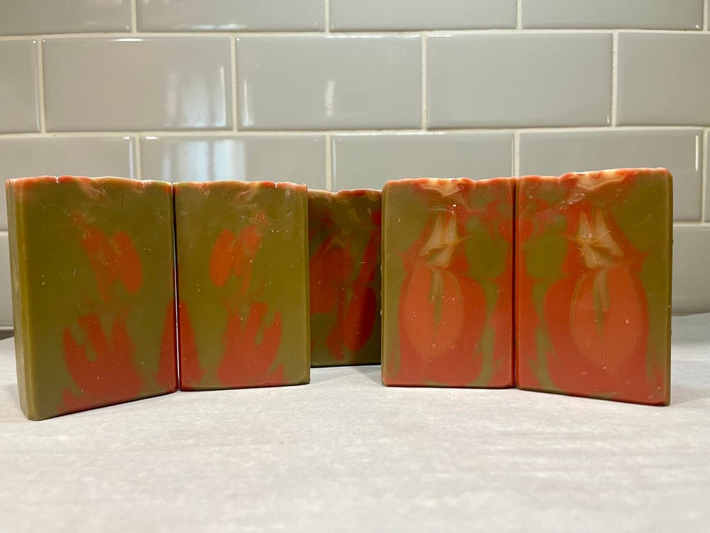Since my products are all handmade, hand-poured, and hand-cut no two bars of soaps will look exactly the same. As colors, patterns, and shape can and do vary from batch to batch, please expect differences in my designs from time to time.