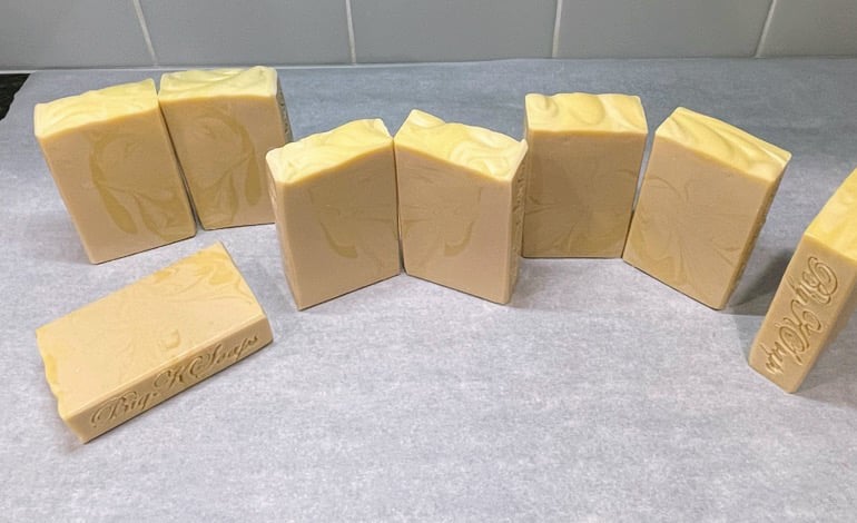 Since my products are all handmade, hand-poured, and hand-cut no two bars of soaps will look exactly the same. As colors, patterns, and shape can and do vary from batch to batch, please expect differences in my designs from time to time.