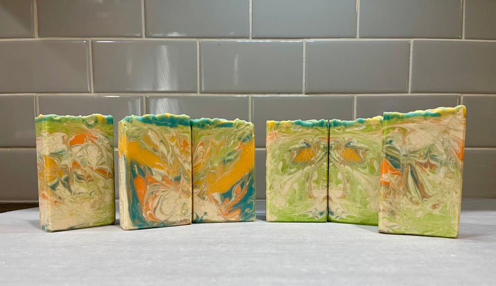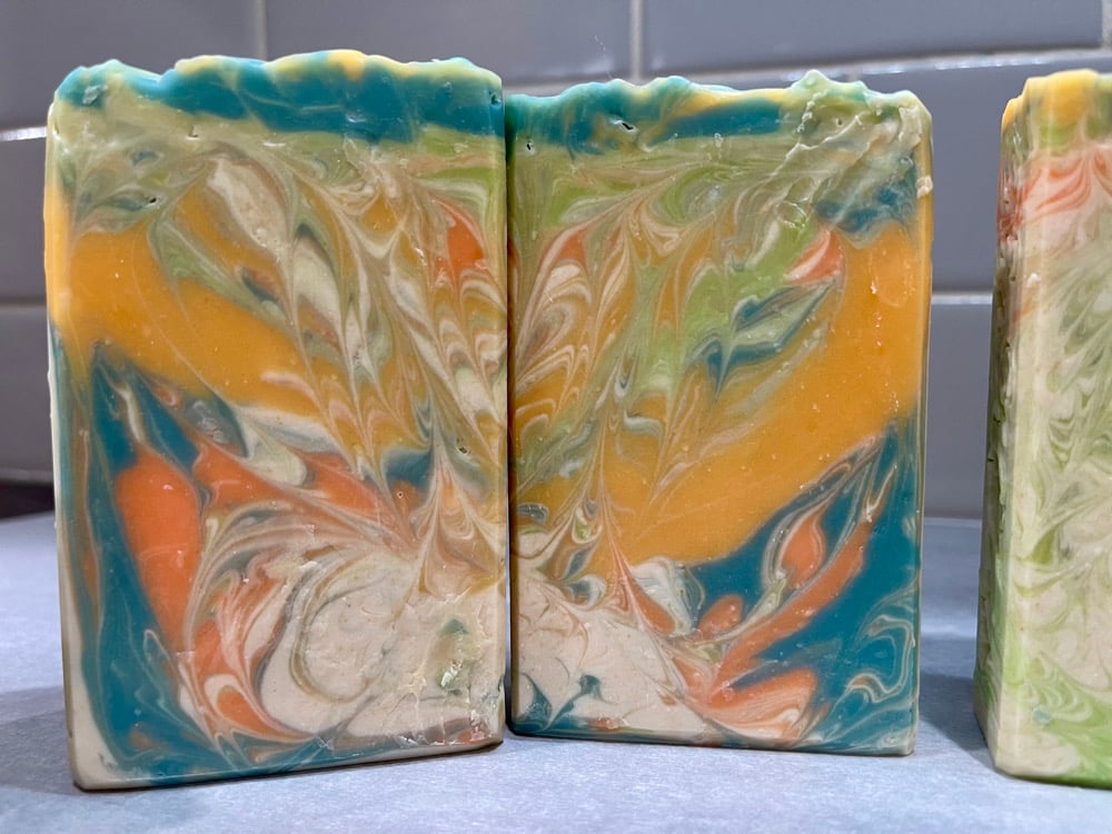 Since my products are all handmade, hand-poured, and hand-cut no two bars of soaps will look exactly the same. As colors, patterns, and shape can and do vary from batch to batch, please expect differences in my designs from time to time.